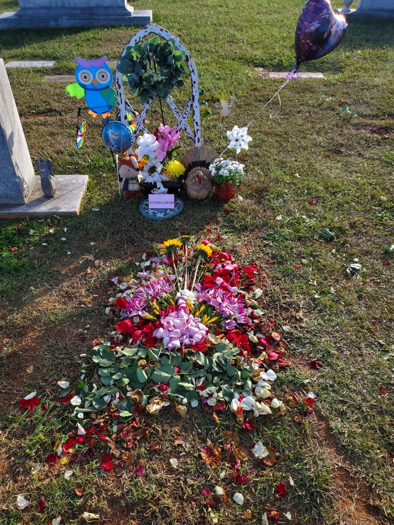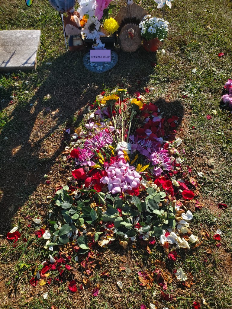 These are pictures of the flower turkey I created for Corrie today. I moved everything ahead of Tuesday to prepare for her gravemarker’s arrival.