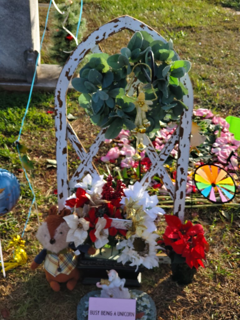 For example, I often share photos on my social media of the cemetery. I share photos of my daughter’s and in-laws’ graves as I decorate and clean them. I also share pictures of the previously undecorated graves of other children both historically and present.
