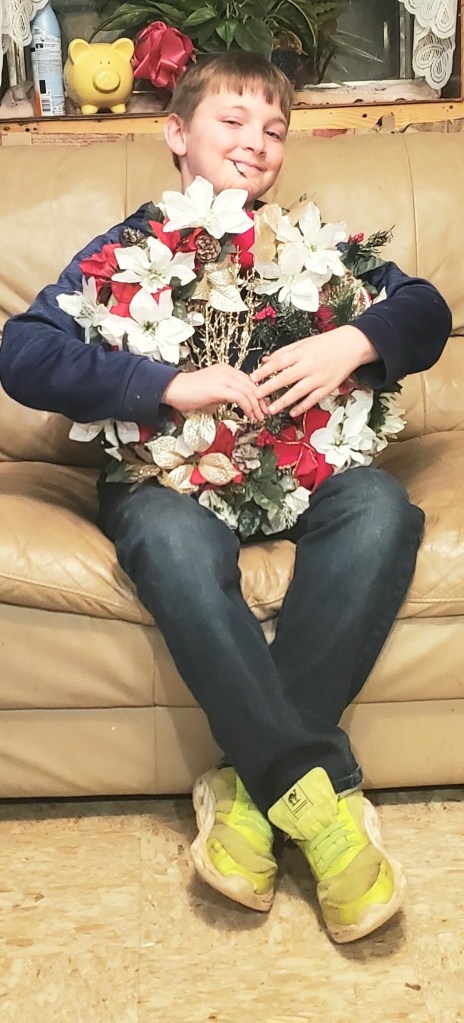 I joked how my grandmother said seriously, “I don’t see the turkey,” in the rose art I did at Corrie’s grave for Thanksgiving.