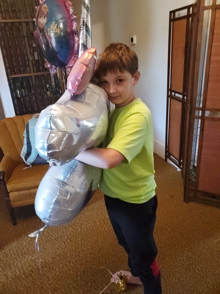 Every week, I place a balloon at her site. Hayes put it directly behind the window, and I wanted it on the side. I let it go.