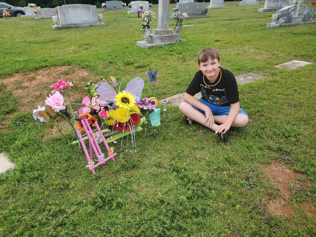 Yesterday, I wrote why I share photos of the cemetery on social media because parents who have their children in life together share theirs all the time. Hayes and I discuss the changes we make at Corrie’s and their grandparents’ graves together. He has a voice in what we place there and where we locate it.