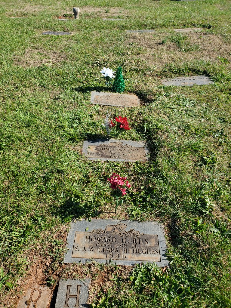 Before we left yesterday, Hayes found another infant’s grave near the ones I serve. I have sometimes trimmed it and dropped petals around it. He said, “This one isn’t decorated. It needs something.”