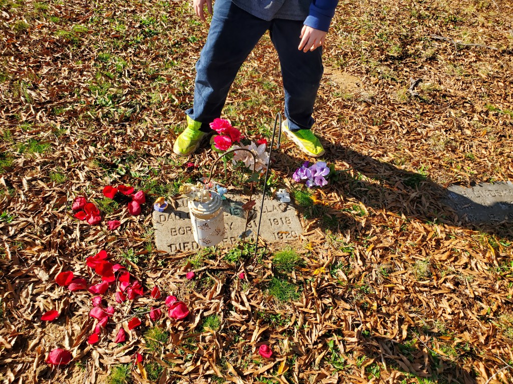 When we go to the cemetery, the event is not to enforce what I do voluntarily onto him. Hayes chooses to go, but I also need to be open to include him. At times, I feel protective of the spaces in which I work, especially Corrie’s area.