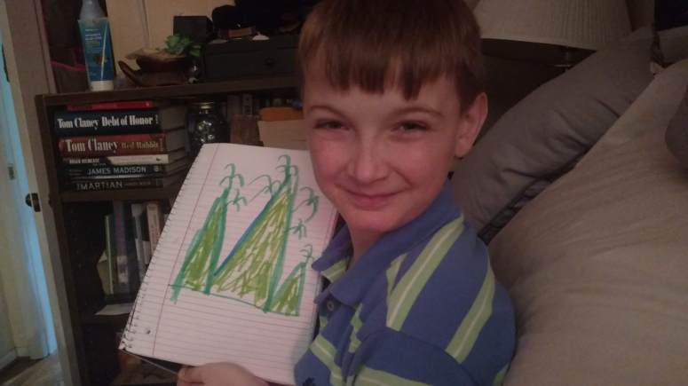 I include Hayes, when he wants to go, in my work at the cemetery. The picture above is a single example of debate between my son and me, along with compromises. The pink lines are what I wanted, and the yellow is his influence.