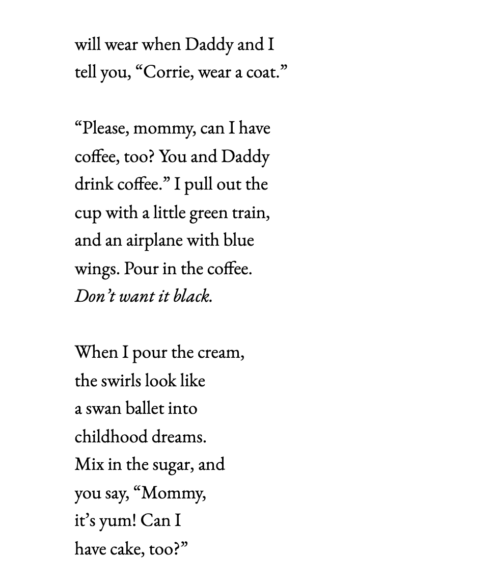 2 thoughts on “Coffee and Cake (A Corrie Poem)”