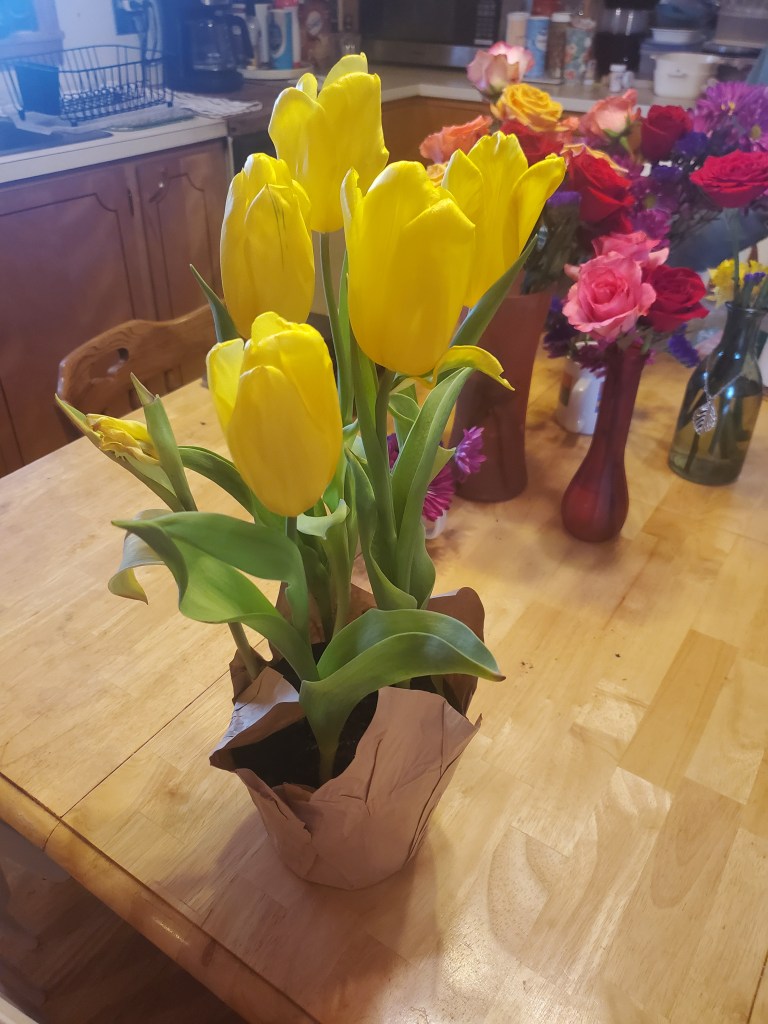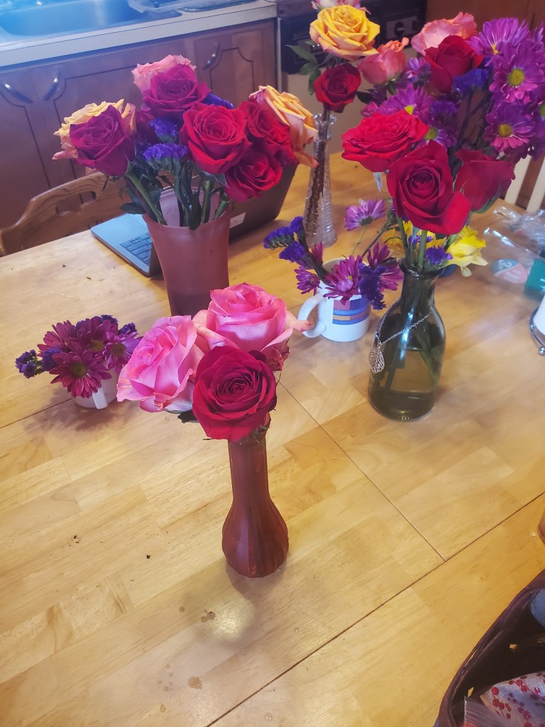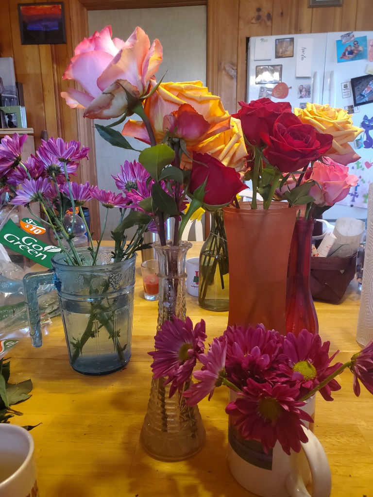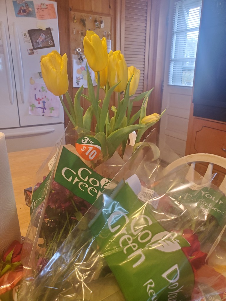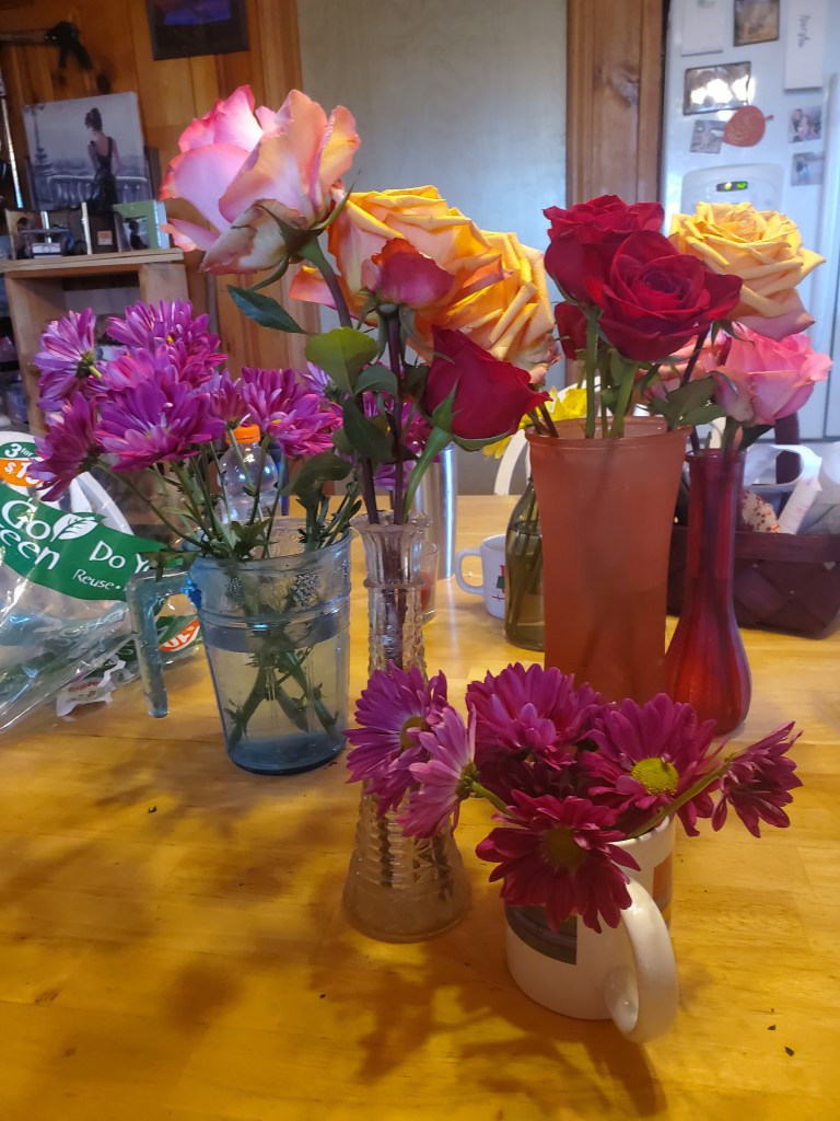 This afternoon, I will cut grass around the graves as the season for mowing approaches. I have arranged the flowers I bought from the grocery store. I placed them throughout the house, including in Corrie’s room.