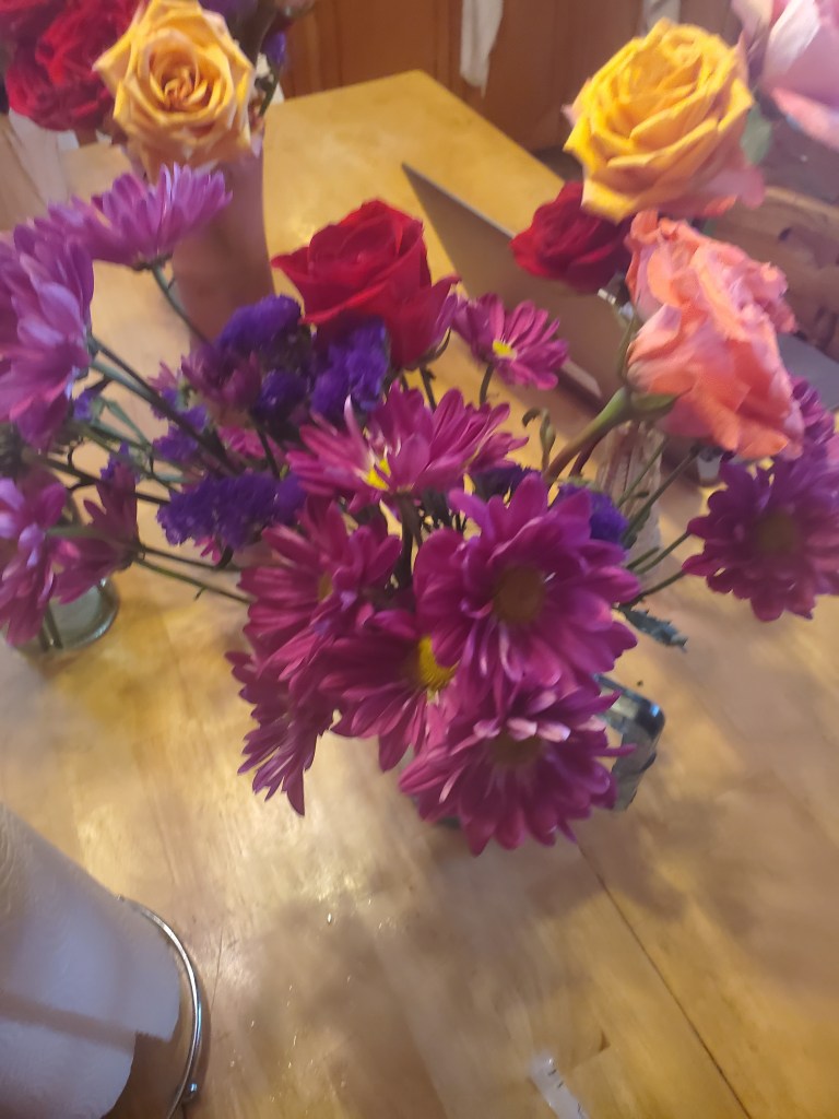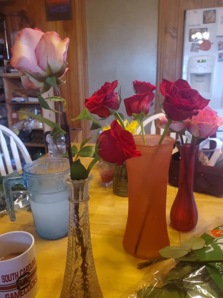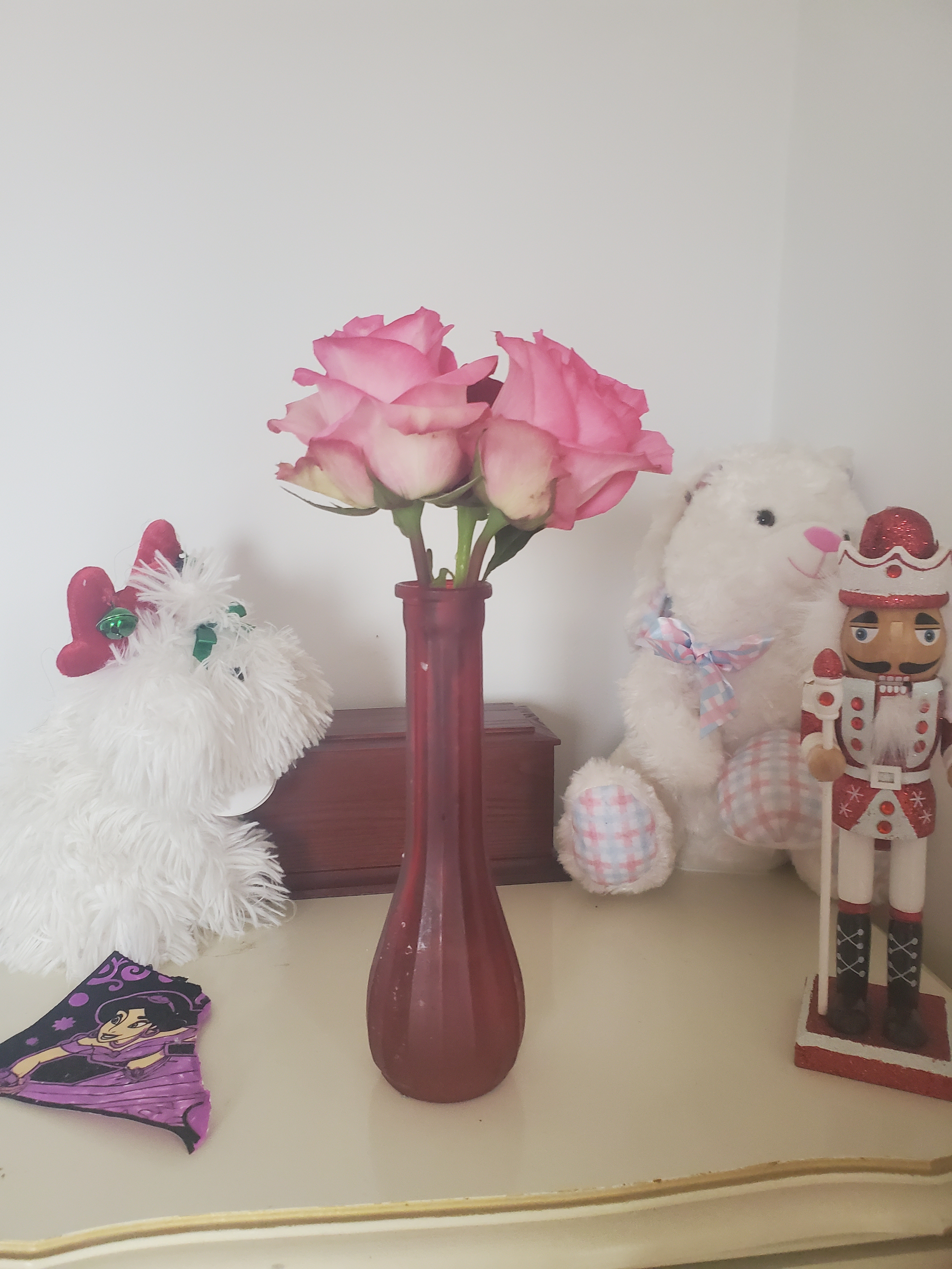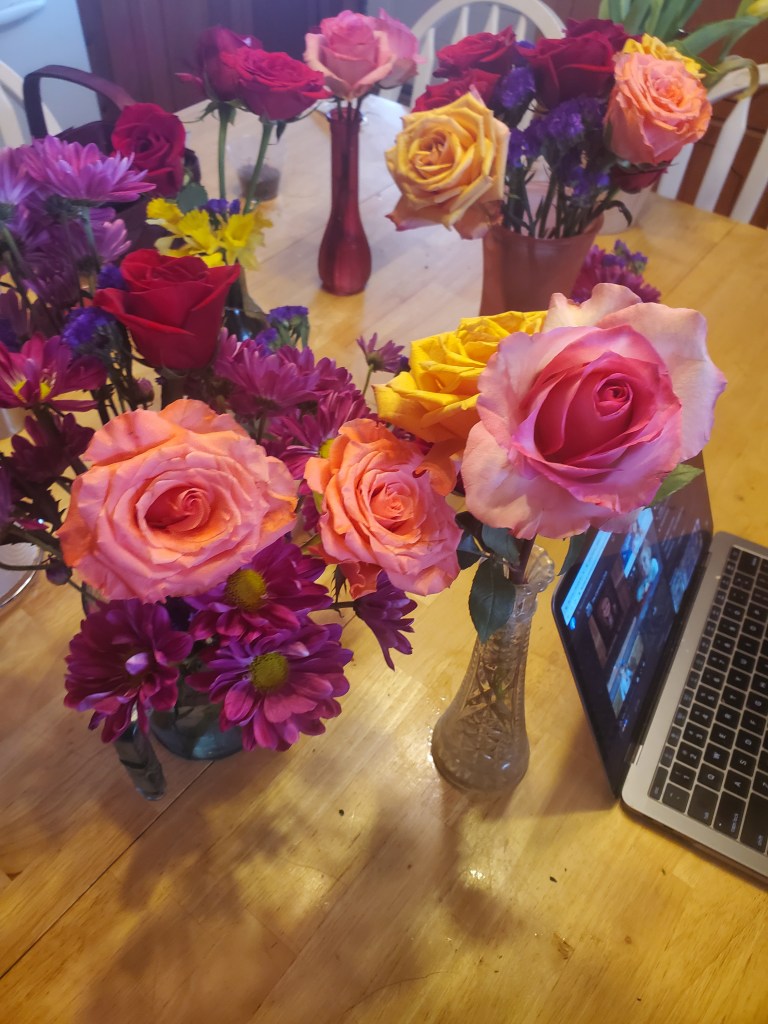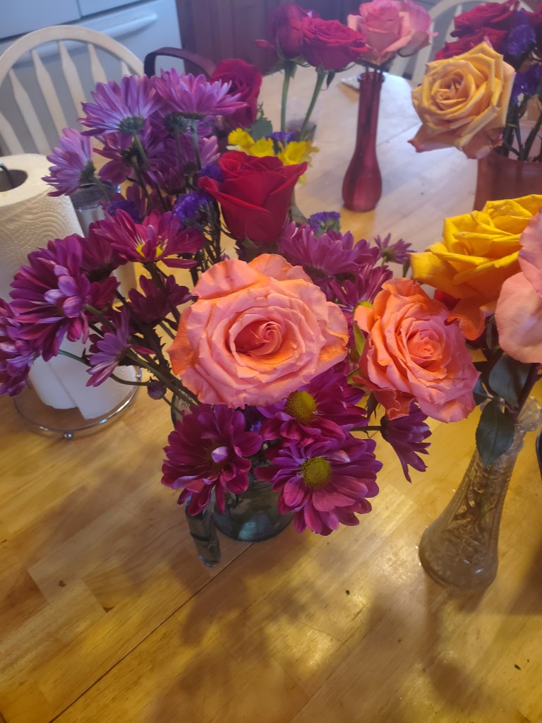 This afternoon, I will cut grass around the graves as the season for mowing approaches. I have arranged the flowers I bought from the grocery store. I placed them throughout the house, including in Corrie’s room.