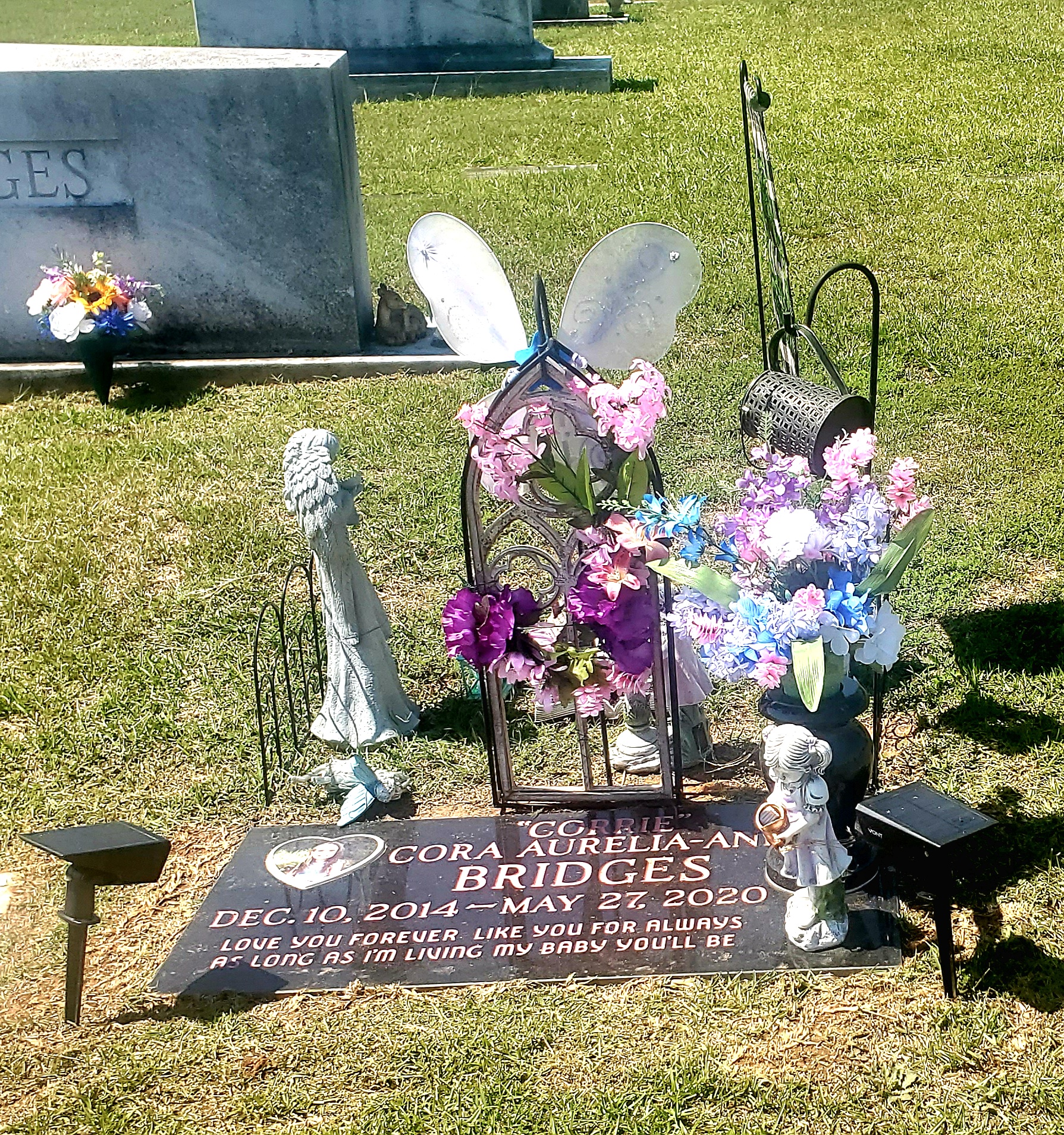 The area around Corrie’s grave marker is an artistic outlet where I can show what represents her spirit, intelligence, and heart. Among her interest in the various Disney princesses, her favorites were: Elsa, Tiana, Jasmine, Aurora and Ariel.