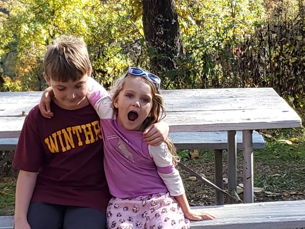Forget trying to get a sibling picture of sweet smiles in fall 2019. Let’s show expressive faces. (We did finally get the sweet smiles’ picture on our day trip the mountains.)