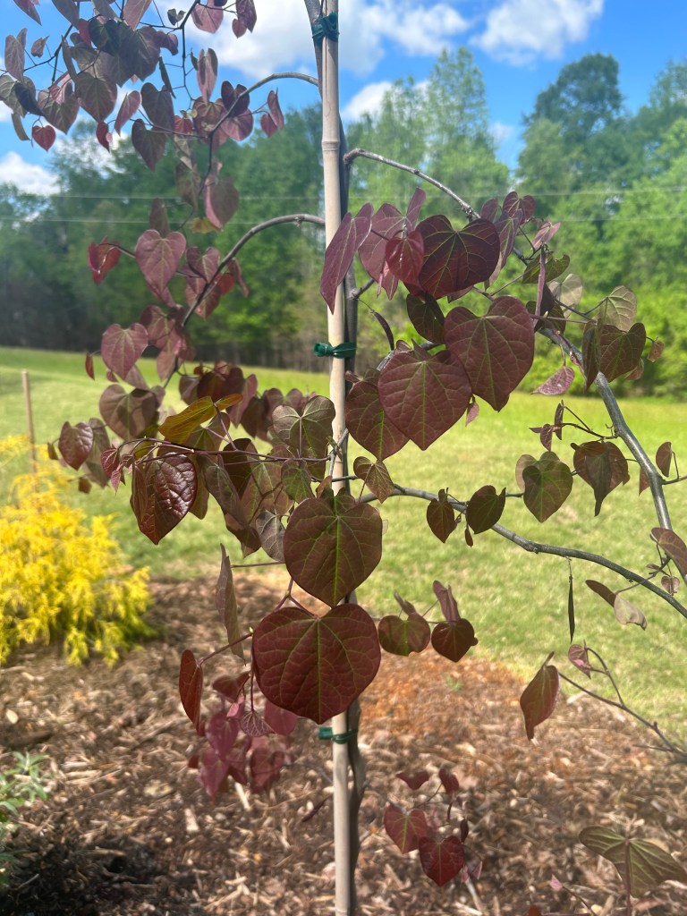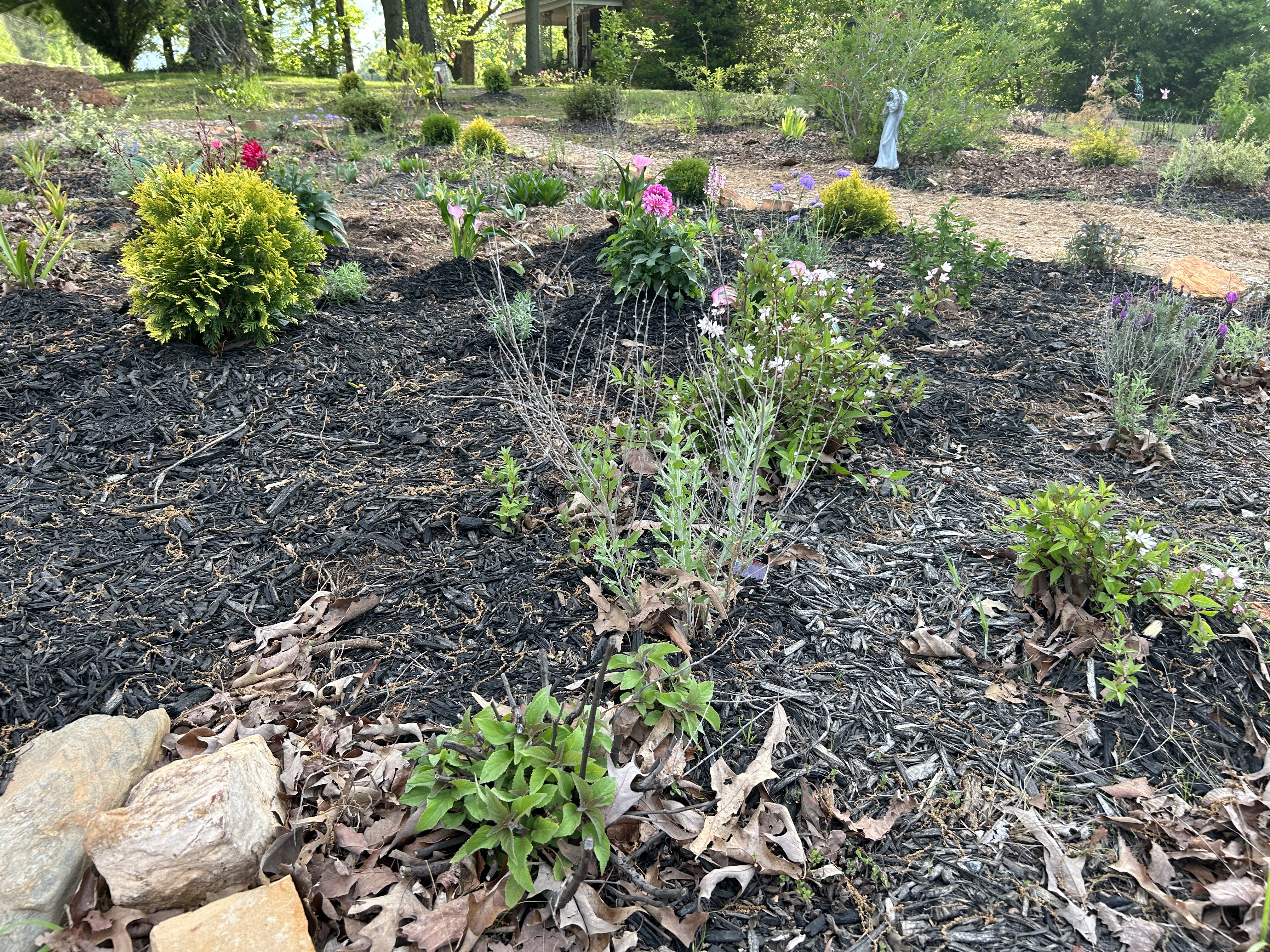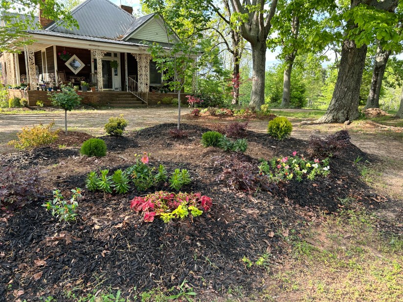 My third container filled with annuals. I’ve also become interested in trailing plants this year.The Weeping Red Bud Tree in Corrie’s Anniversary Garden. On Corrie’s angel anniversary, we plan to plant something here each year. I set up the center plants first.
