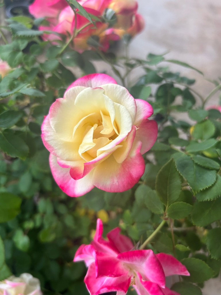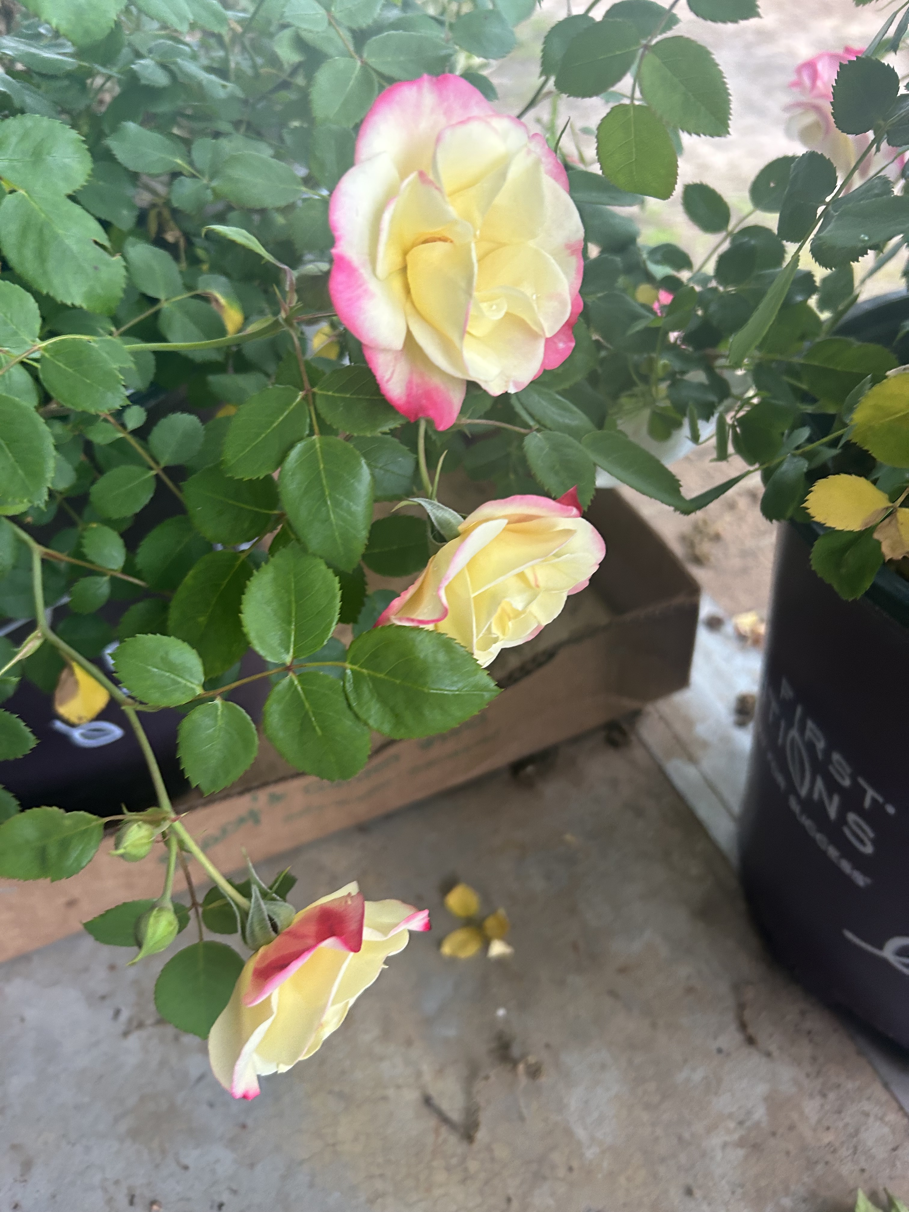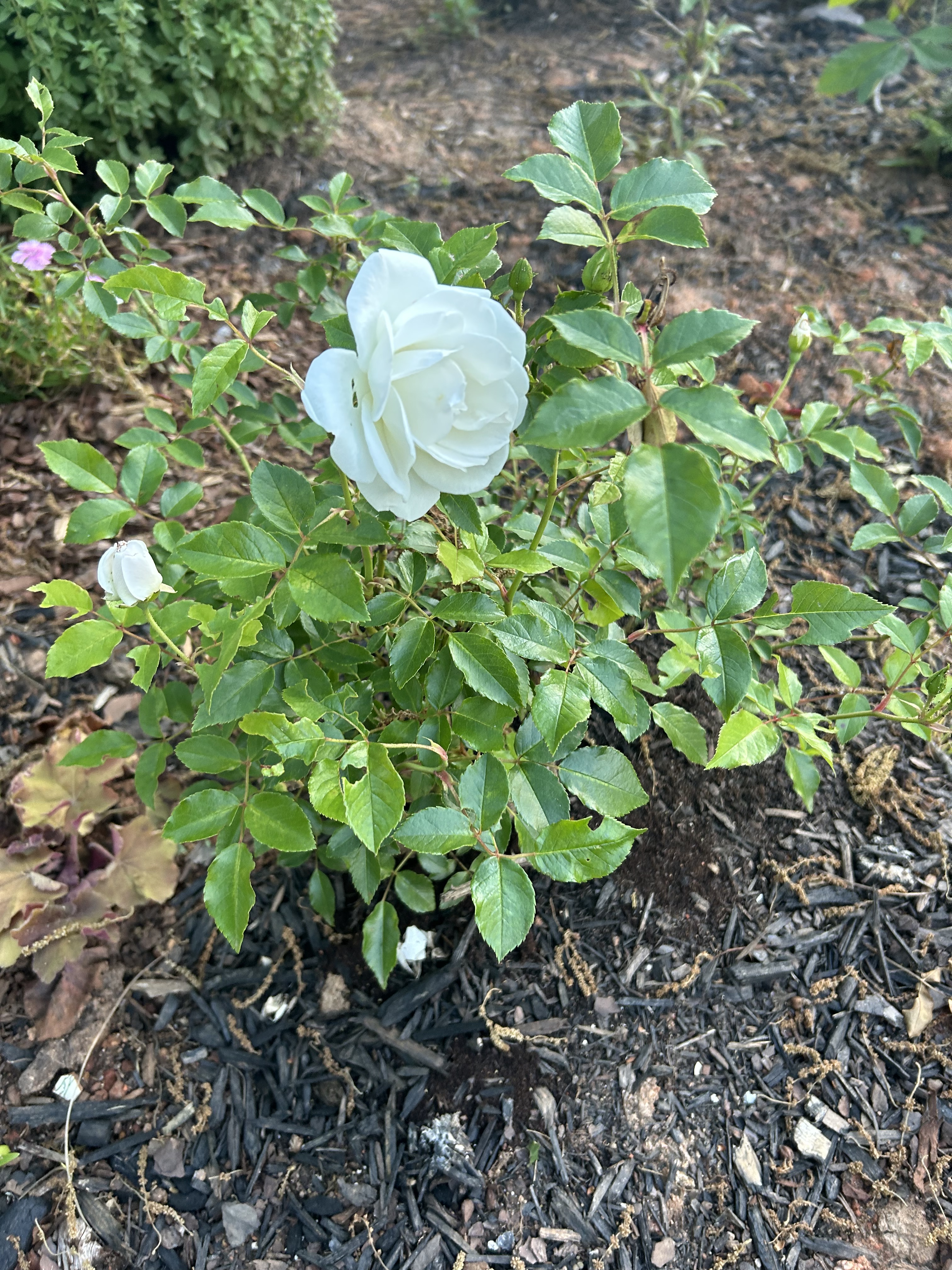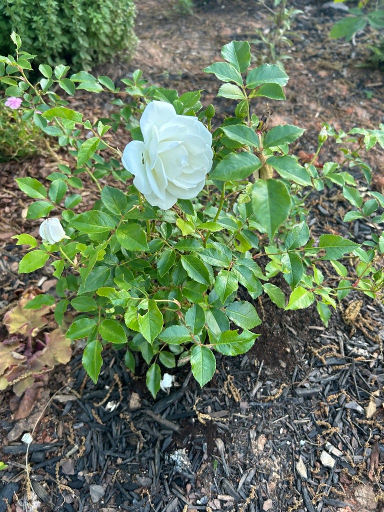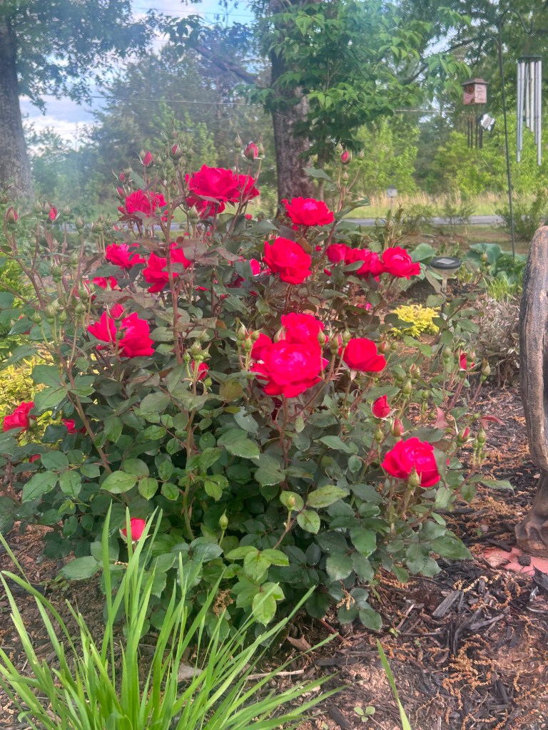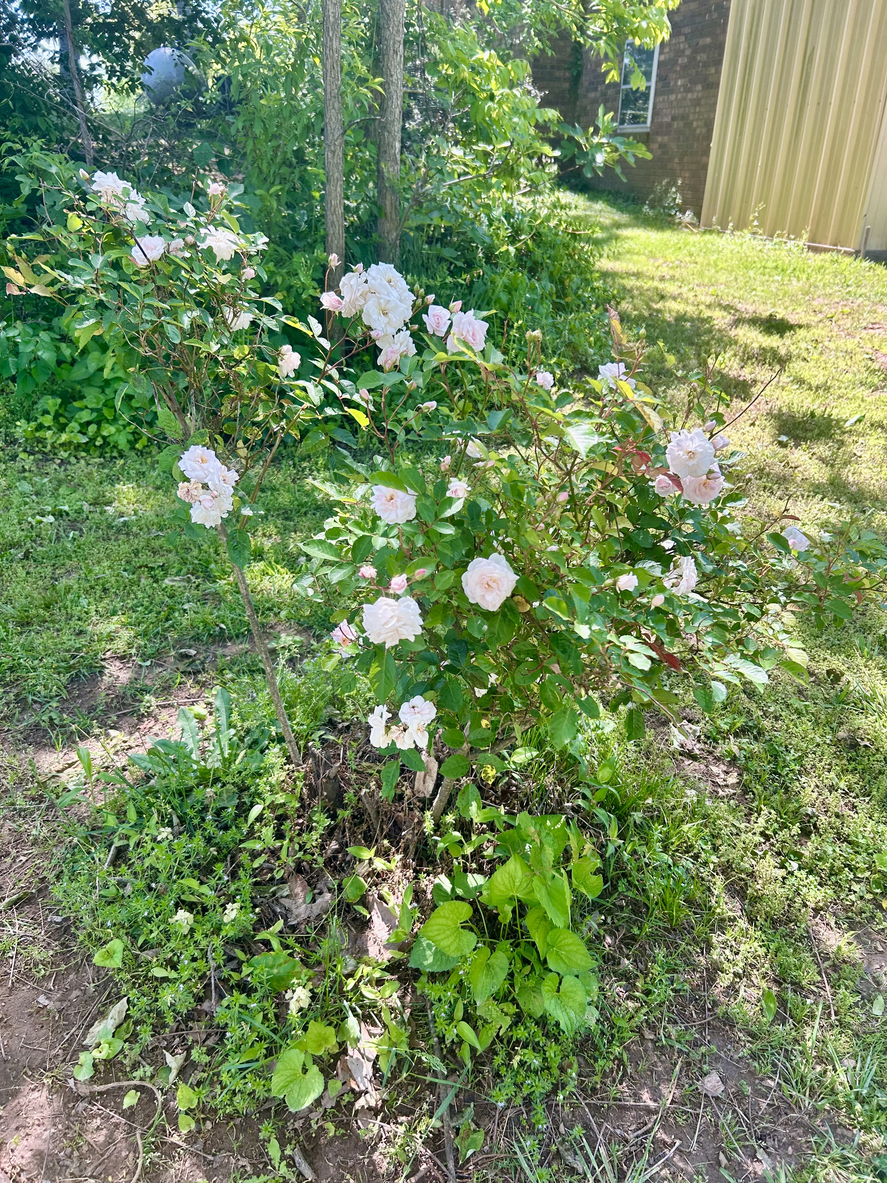 John’s mother’s and grandmother’s rose shrub. It originally came from John’s grandmother’s house, and he said it was the only rose shrub his mother kept. I plan to give it company with my two new rose shrubs.