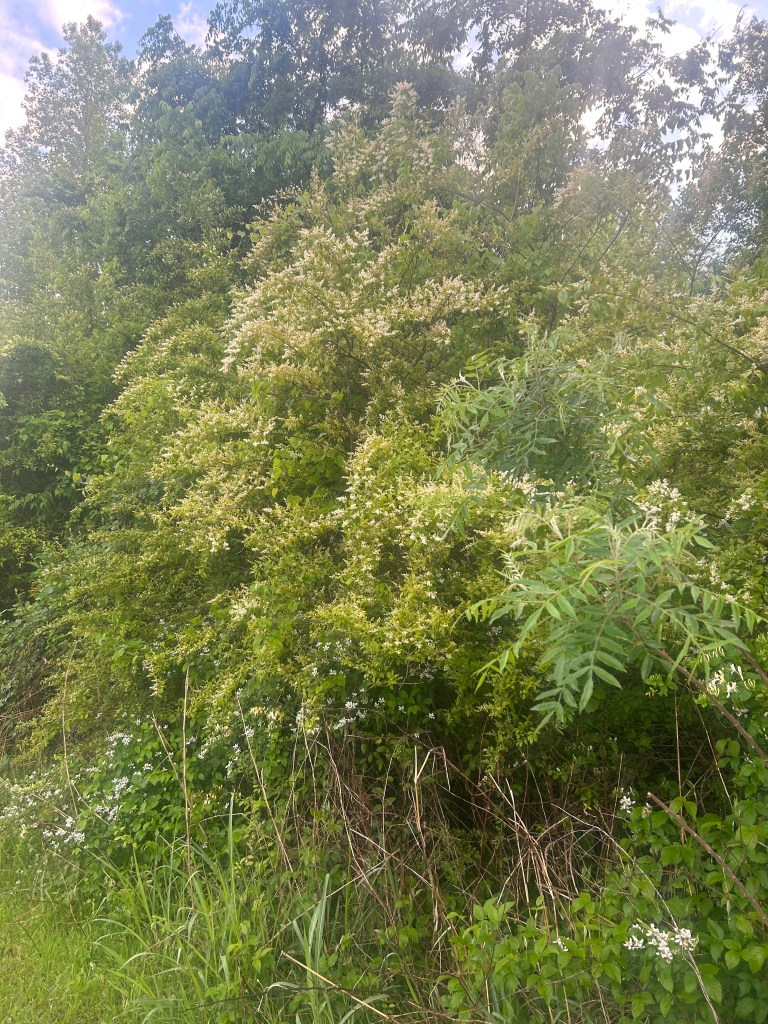 Honeysuckles and other flowers in a tree, of which I don’t know the name, grow. They spell like jasmine.