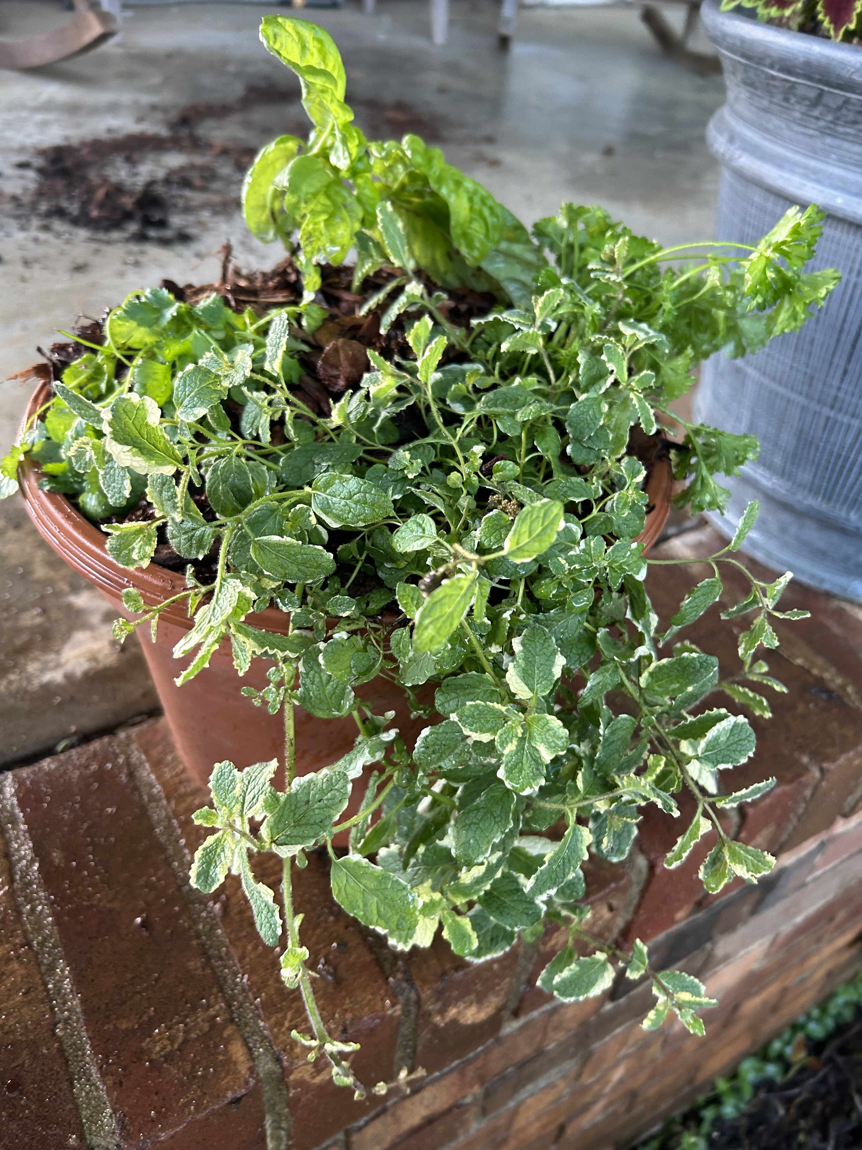 One of my four containers I’ve created for this season with pineapple sage, basil, cilantro, and parsley.