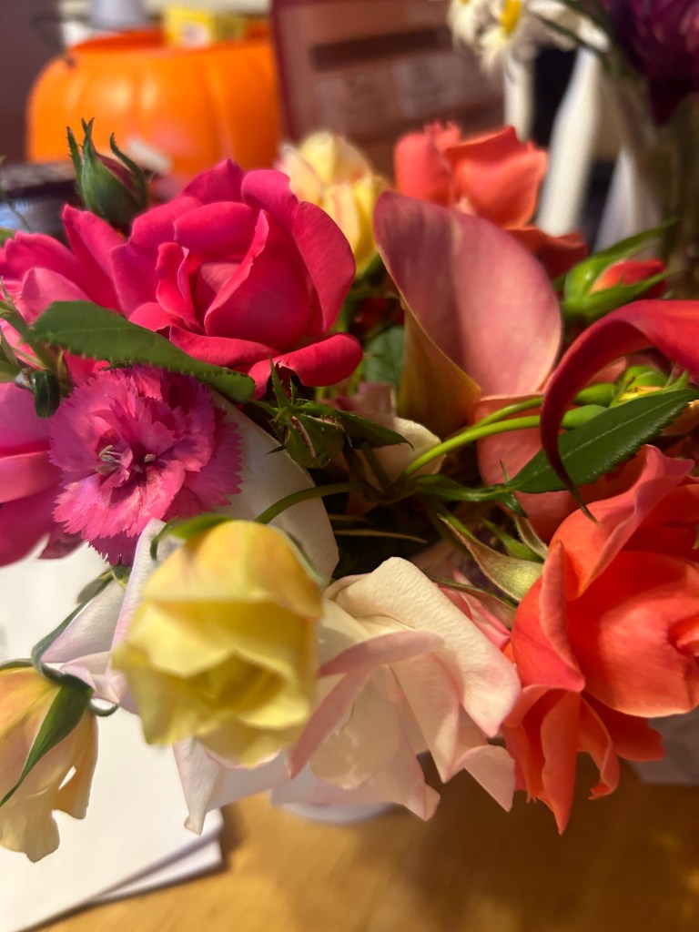 A floral arrangement I made for students to give to teachers/ staff of their choice at my school called Corrie’s Cups of Kindness.