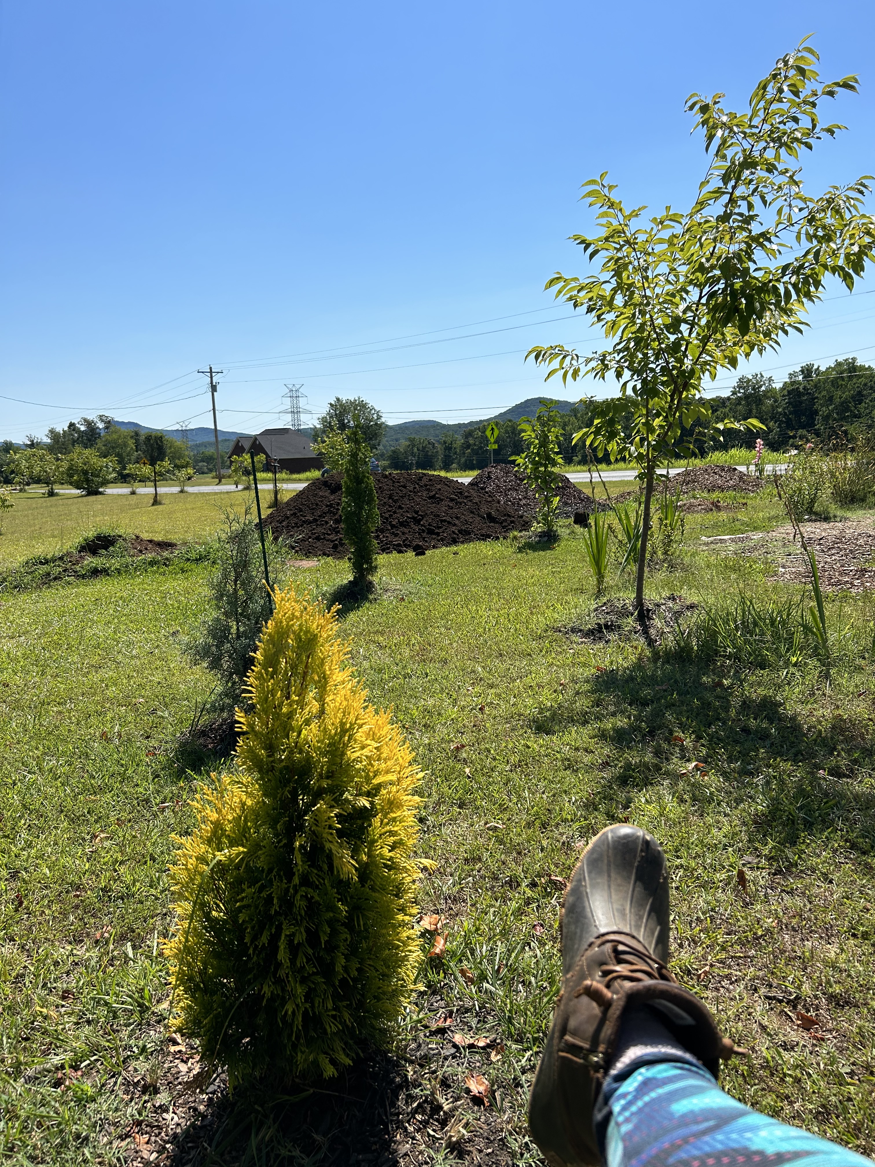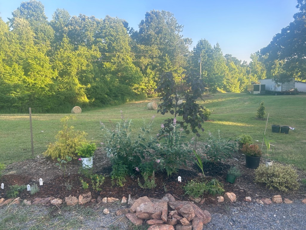 A picture i took yesterday at the back of Corrie’s Arendelle Garden, the largest garden on the farm, while I took a break from creating a no dig section around a rose trellis and butterfly bench.