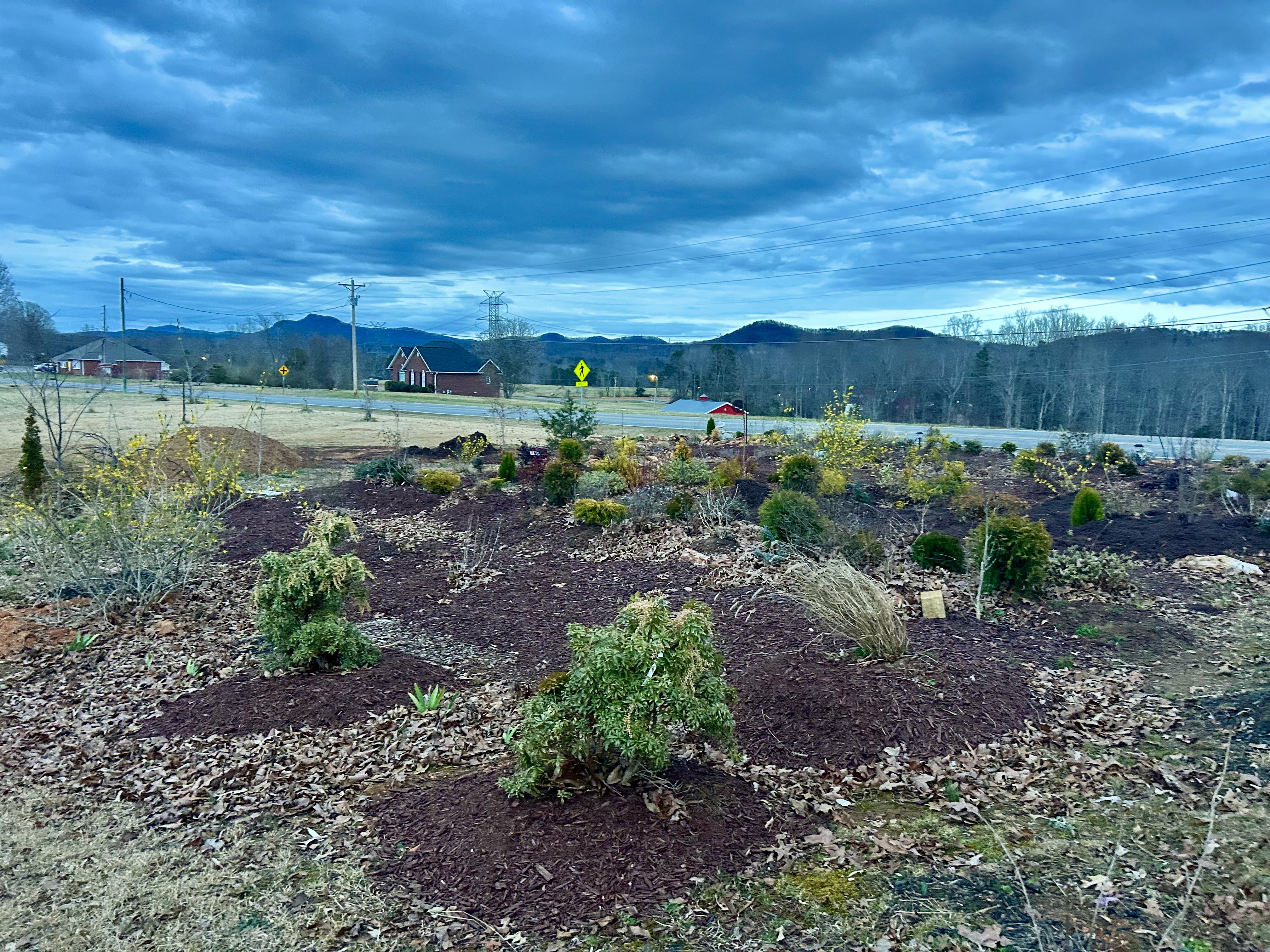 I have completed two sections of no dig gardening around the current areas in Arendelle, while working on the third and largest throughout the winter. The fourth section was completed last July. This third area is made up of mostly evergreens, conifers, and winter interest plants, such as Arctic Fire Dogwood.