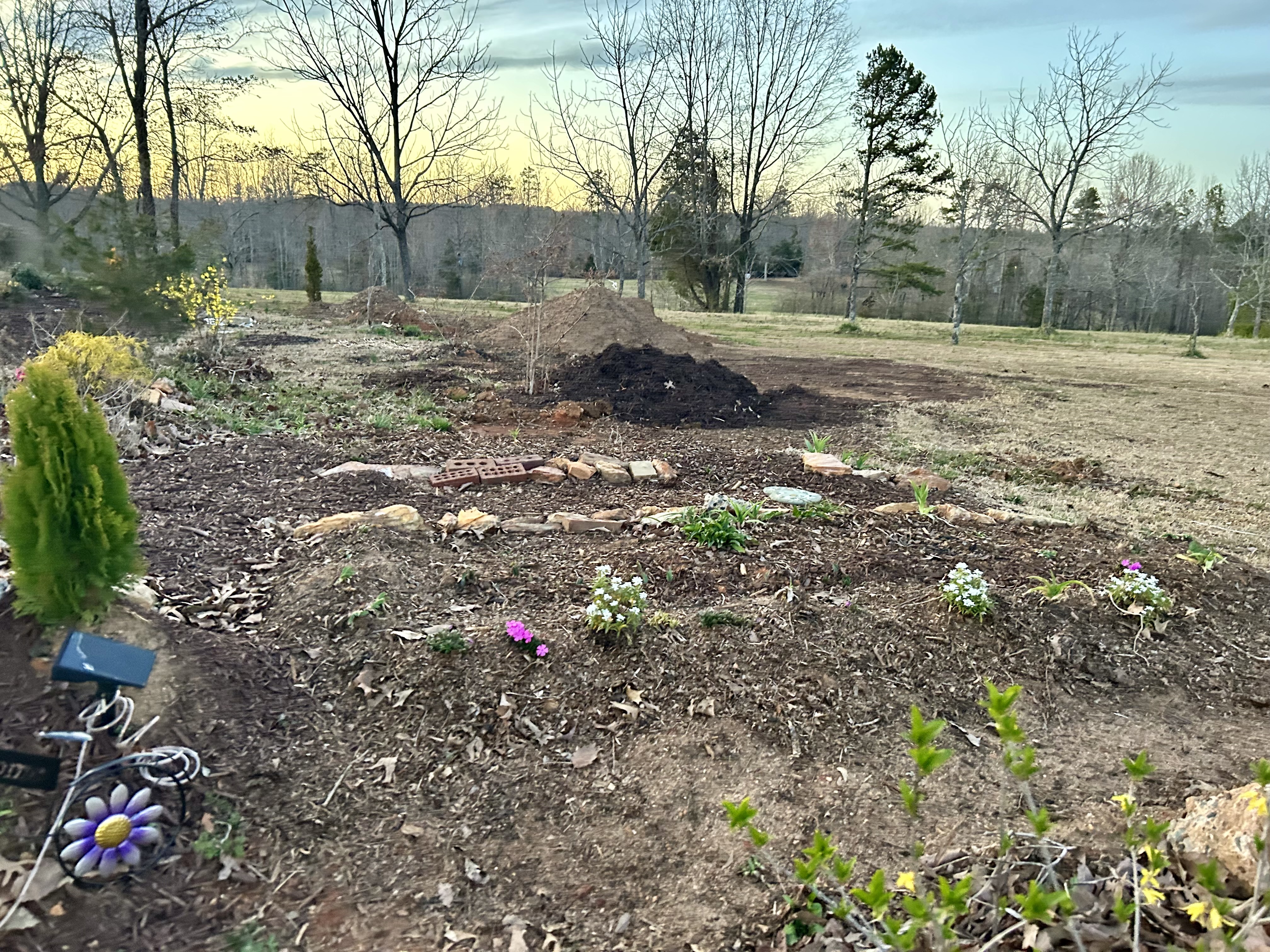 I started no dig gardening one year ago as a way to ensure healthy soil and deal with red clay. Our land has been described as difficult and barren for plants. John’s mother tried different plants through the years, and she was the most successful with day lilies.