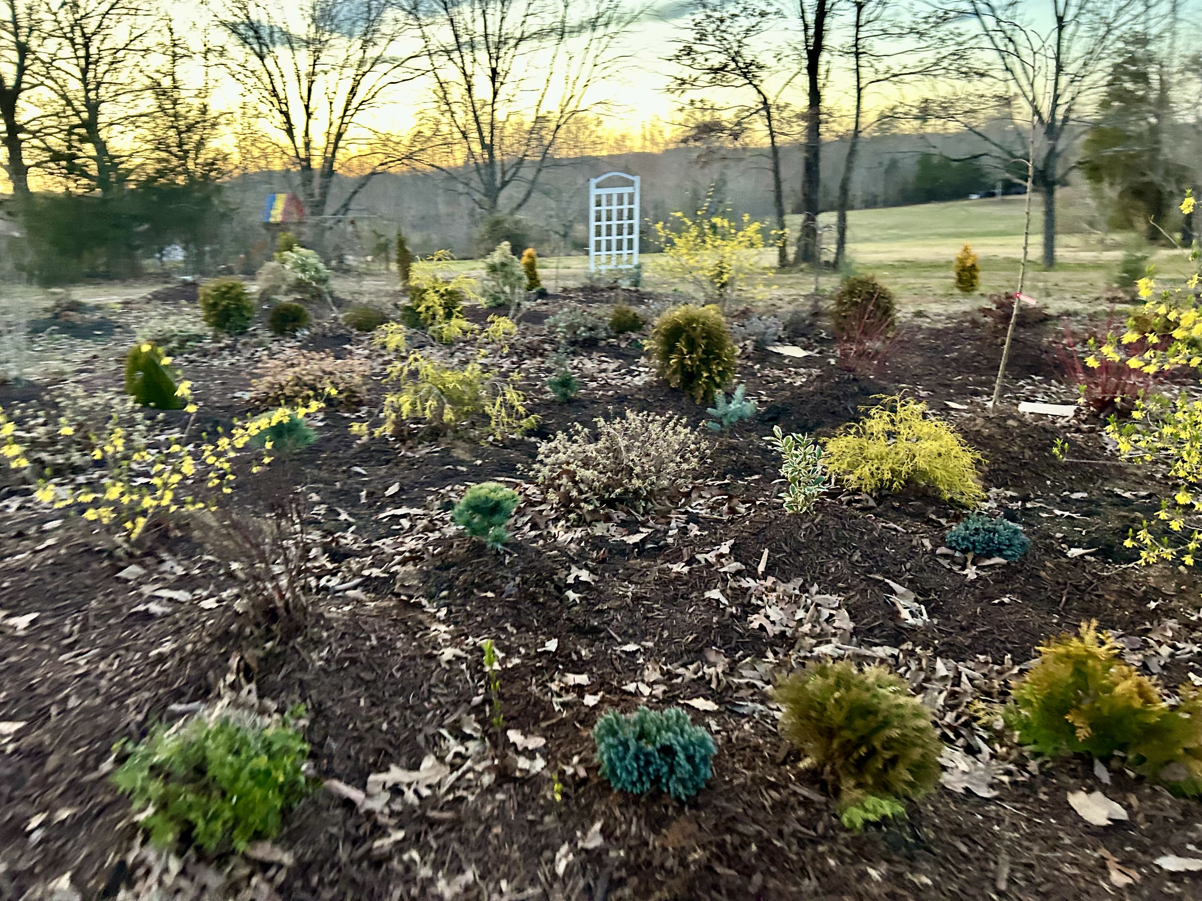 The gardens, a doctorate, career, family commitments, and a general disinterest in writing have kept from Corrie’s Season lately. Throughout the winter, I have focused on the Winter Garden of Arendelle, while adding evergreens, conifers, and winter interest plants in other gardens, too. When I look at the gardens, I want to see color year round.